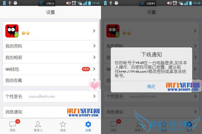 手机上登陆的QQ便会提示“下线通知”,对方除了修改密码或冻结账号别无他法,此招安全有保障。
