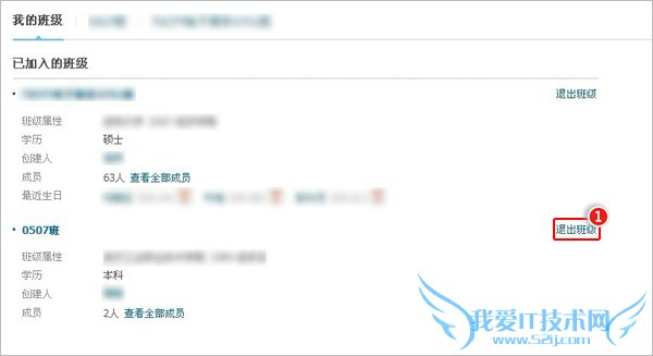 登录班级管理页面,在您需要退出的班级后面点击“退出班级