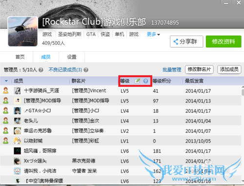 3.可以看到默认群成员等级头衔为LV1,LV2,LV3,LV4,LV5,LV6的等级头衔形式,点击小笔图标进行群成员等级名称修改