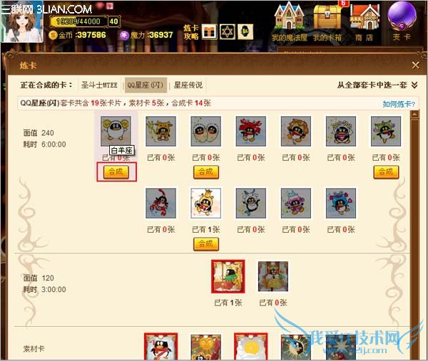 注:当已经集齐普通套卡(如星座传说),可使用百变卡直接变闪卡(如QQ星座)的素材卡。