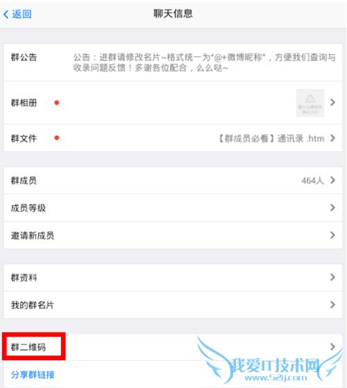 第四步:进入群设置页面,在这个属性页面,你会看到群二维码,点击进入