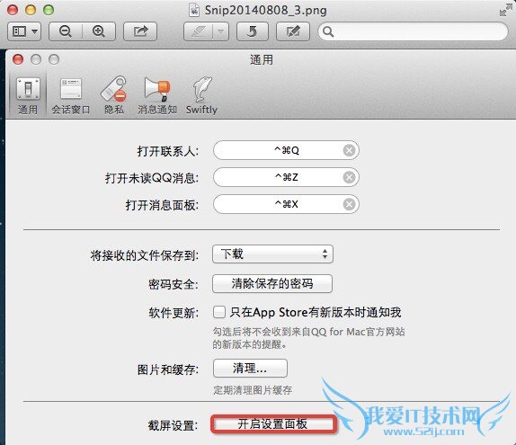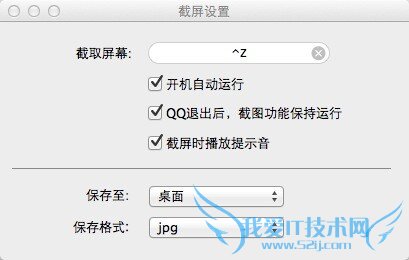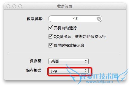 同时你还可以设定QQ Mac版截图保存格式 ,有:png、bmp、gif、jpg、jpg2000以及tiff。一般情况下默认为png格式的,甚至苹果Mac OS系统自带的截屏工具都是保存为png格式的。至于大家使用的话最好是设置为jpg格式,图片清晰且占据的空间不大。