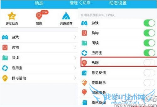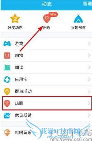 2、如果你的手机QQ没有热聊功能,可能是您没有开启,可以在动态这里点击管理。在动态设置这里将热聊功能开启就可以了,如下图所示。