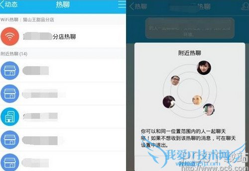 1.进入QQ热聊后可以看到一些附近的热聊,此外第一次进入手机QQ热聊,还会看到一个提示,大意是你可以喝同一位置范围内的人一起聊天咯,如果不想受到该热聊的消息,可以在聊天设置中退出,我们直接点击【我知道了】即可。