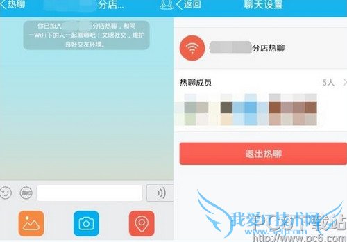 2.进入热聊聊天窗口,就可以开始和在同一WiFi下的非好友聊天了,现在QQ热聊里面只能发文字和照片,功能相对有点少。点击热聊顶部的设置,可以看到热聊成员的人数,如果不玩了或不想收到热聊消息在这里点击退出热聊,如下图所示。