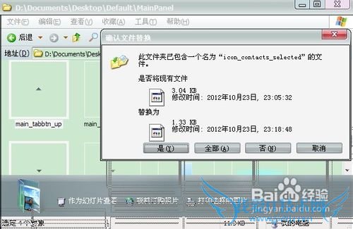 然后我们把这四张图片复制到刚刚MainPanel文件夹里面去!点击替换即可!