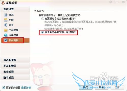 不过有的童鞋可能会在替换文件之后重新等QQ会自动更新!这个时候我们需要把QQ的自动更新关掉才行!在系统设置里面的软件更新设置一下即可。