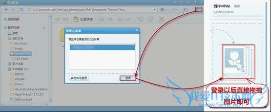 照片只存在公司一台电脑上,下班回家就看不到了,让人沮丧失望。这种情况之下,用QQ影像“文件中转站”功能将图片下载到“中转站”以后,回家 打开并登录QQ影像,进入“图片中转站”界面,就能轻松解决这一问题。QQ影像文件中转站功能让用户在任何一台终端都能看到心爱的美图,轻松便利。