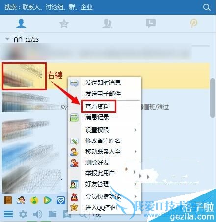 1.登陆QQ后,随便选择一个QQ好友,右键查看资料