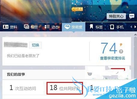 2.然后选择亲密度,就可以看到共同好友有多少个啦。不过此方法不知道共同好友具体是哪些。
