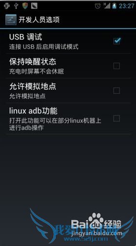 接下来进入到手机设置选项(这里拿安卓4.0系统的手机演示)!然后找到开发人员选项。进入之后把USB调试上面的勾去掉!这样的话就可以用电脑查看手机上面的文件了、