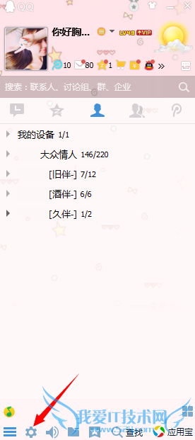 1、登录QQ,在主界面点击设置功能选项,如图。