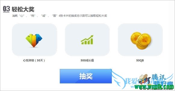 3、消耗“心”、“悦”、“诚”、“服”4张卡片的抽奖总次数可以抽取轻松大奖
