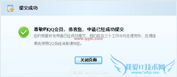 选择恢复范围后单击提交按钮,就会提交恢复QQ好友的申请,你的申请最迟会在3个工作日内处理完毕,处理结果将使用QQ系统消息通知你。
