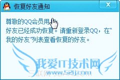 成功恢复QQ好友后,QQ就会自动弹出恢复好友通知告诉你的。