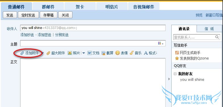 4、然后在qq首页选择“写信”,点击“写信”然后从旁边添加要发送邮件的好友。