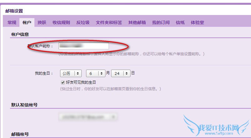 2、在邮箱设置中选择“账户”在默认账户昵称中修改,你想改的网名。