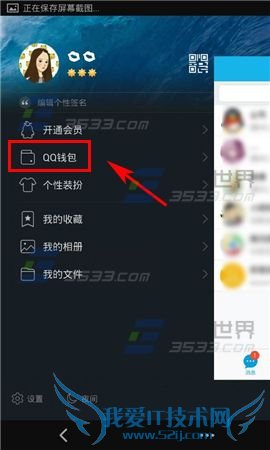 1)打开QQ应用,点击左上角【头像】,在导航栏接着点击【QQ钱包】。(如下图)