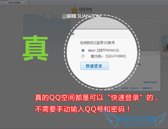 一般情况下,从QQ聊天窗口里点击QQ空间的网址是不需要登录的。如果电脑上有多个QQ号同时使用,也只会让您进行一个简单的选择。如果遇到需要手动输入QQ号和密码的情况,99%都是盗号网站,请朋友们小心分辨。