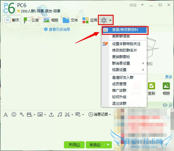 1.打开QQ群聊天窗口,在应用的右边选择查看/修改群资料