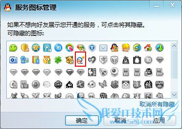 最简单快速的方法就是直接在qq图标管理器的窗口上将q+的图标设置为隐藏即可。登陆qq,在主界面上点击qq头像,然后在“我的资料”窗口上个性签名后面有个“图标管理”按钮,点击即可打开服务图标管理界面了,然后可以将你不需要显示的q+图标隐藏即可。如图所示: