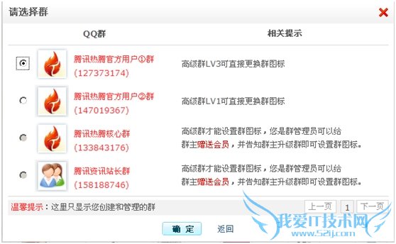 选中群图标后,即可按照提示选择相应的群进行设置。自建和管理的高级群可自由更换群图标,若您是群管理员可以给群主赠送会员,并告知群主升级群即可设置群图标。