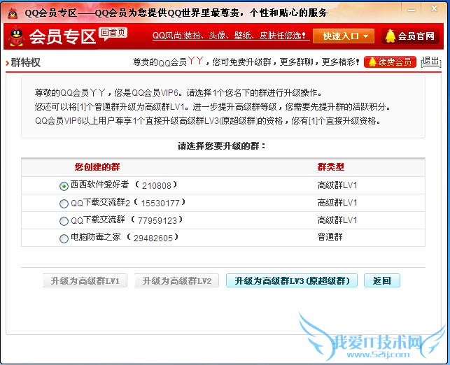 注意:QQ会员用户只能升级自己创建的群为高级群。