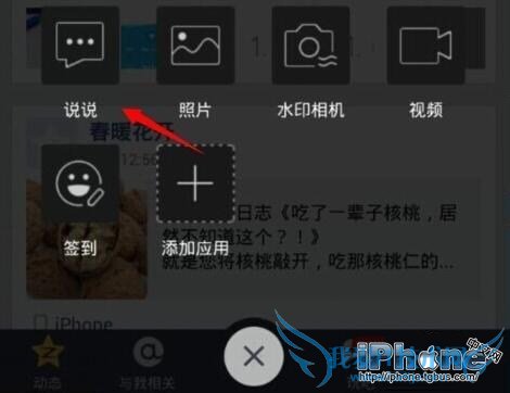 2、点击发表【说说】,这里以说说为例,其它的也差不多。