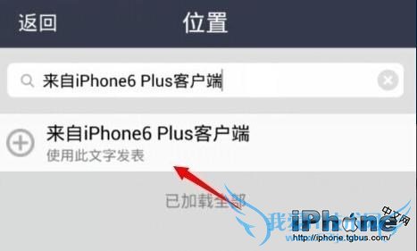 5、在搜索栏处输入【来自iPhone6s客户端】,然后再点击【使用此文字发表】就可以了。