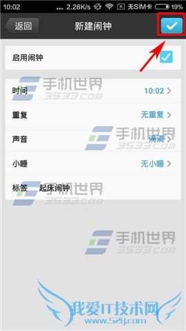 2)接着点击右上角【+】,编辑闹钟内容后点击右上角【√】即可保存。(如下图)