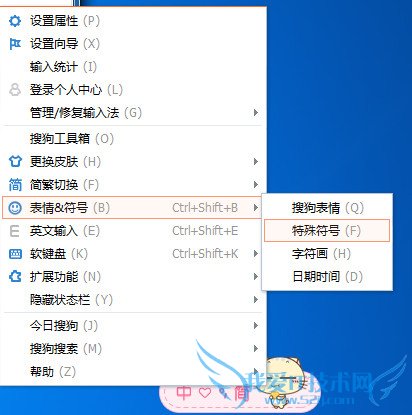 2、打开你的搜狗输入法,右击“表情&符号”特殊符号中的特殊符号