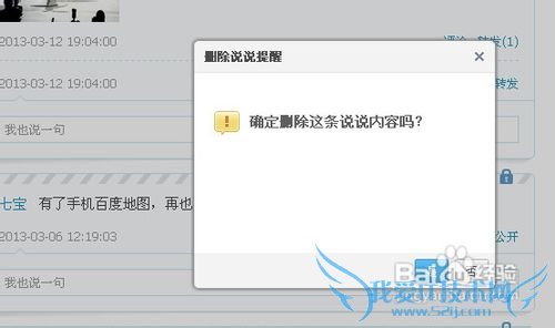 自己发表的说说才能删除,我们点开后,在某一条说说的右下角,我们看到删除,我们点“删除”。