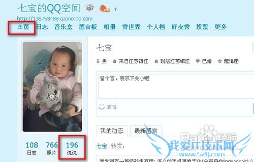 我们首先打开我们的QQ空间,首先点“主页”,再在左上角,那边显示你有多少条说说,如图,我们点开。
