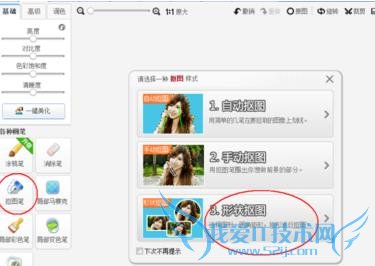 4、接下来我们需要最的便是最关键的一步啦,选择右侧画笔中的“抠图笔”,我们要抠圆形头像,选择第三个“形状抠图”。