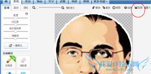 8、这个时候需要裁剪的道具真正派上用场啦,当大家保存好以上步骤的头像时,我们需要将图片小角上的图片裁剪掉,如图;