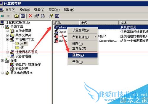 4、最后在该用户上面点击鼠标右键---->属性