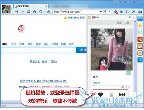 QQ浏览器侧边栏贴心为用户提供一键进入豆瓣电台的应用,随机播放时下流行的各种音乐作品,更可以登录豆瓣帐号,选择自己喜欢的音乐风格,时尚流行旋律尽在耳边!(图7)