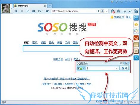 直接点击网页右下角的“QQ云词典”按钮,即会弹出词典翻译框,在输入框中输入想要翻译的中、英文内容,QQ云词典会为用户提供相应的释义;而用户还可以直接标蓝浏览网页时遇到的生词,QQ云词典会自动进行翻译,方便更高效!(图2)