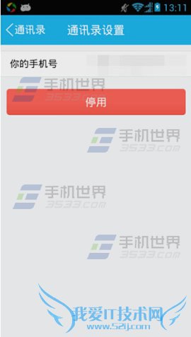 3)在通讯录设置中,点击红色的“停用”按钮。(如下图)