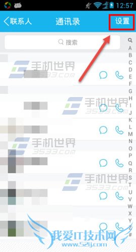 2)在QQ通讯录中点击右上角的“设置”按钮。(如下图)