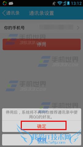 4)弹出确认信息“停用后,系统将不再向你推荐通讯录中使用QQ的好友”点击确定。(如下图)
