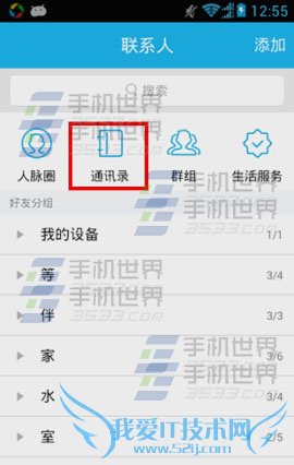 1)联系人栏目下点击进入“通讯录”。(如下图)