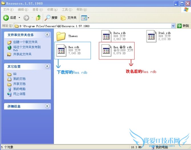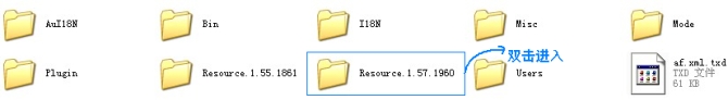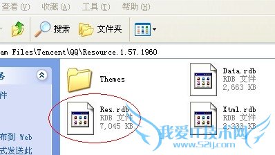 2:跳出文件夹后,单击工具栏上的“向上”(图2)、并双击进入“Resource.1.57.1960文件夹”(图3)找到电脑原装的“Res.rdb”(图4)(win7的可能会不一样,但是方法是一样的,就在QQ的文件夹里)