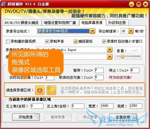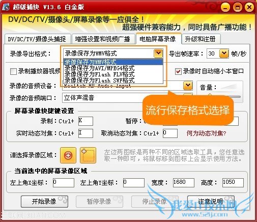 超级捕快支持AVI、WMV、FLV、SWF等诸多流行视频格式的选择,并具有众多编码器的选择,方便录制的视频应用于各种用途。其中WMV、FLV都是目前流行的网络流行格式,体积小而清晰,追求这一点的网友可以试试这种格式。其中WMV最高支持到1080P全高清视频的导出,并能协同超级转换秀实现更灵活的录制参数定义。
