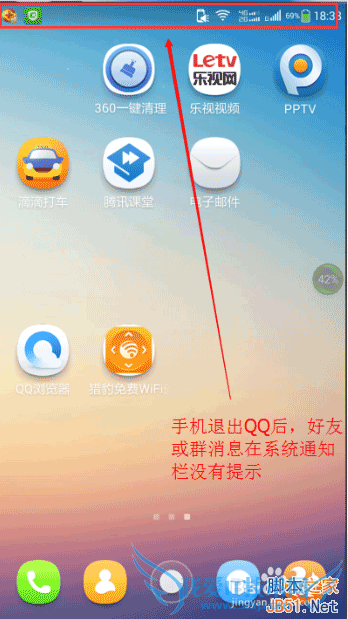 为了看看我们设置的是否成功,我们可以退出手机QQ,然后叫自己的好友发下消息试试,然后看看手机系统通知栏是否有QQ消息提示,如果没有就表示设置成功了。
