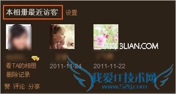 登录您QQ空间->相册->我的相册->打开某个相册,相册页面下方“本相册最近访客”。(注:若目前没有最近访客功能的用户请您也不要失望,后续我们会逐步发放资格,敬请期待!)