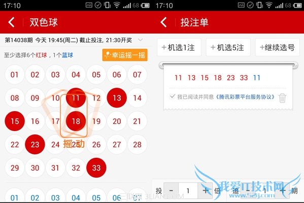 在手机上安装“QQ彩票”软件打开软件之后,选择“购彩大厅”。在大厅中用户可以购买各种各样的彩票。选择一个进行购买,进入购彩界面就能看到幸运摇一摇的图标。点击它,QQ彩票系统就会自动为用户自选一组数字。