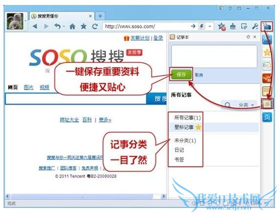 QQ浏览器可谓是办公一族的最得力助手:webkit和IE双内核引擎让上网办公查资料更快速、更便捷,更有特色侧边栏,一键进入微博、空间等多个地带;而特有的记事本功能就像在线笔记本一样,在线查找到了重要的资料,顺手在记事本中记录下来,真是贴心又方便!