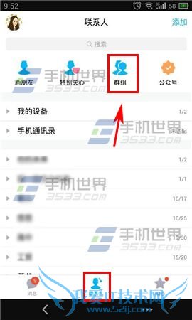 1)打开QQ进入应用后点击导航栏【联系人】,接着点击【群组】,在群组页面点击你要创建群文件夹的【群组】。(如下图)