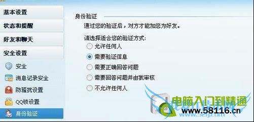 9.第九种方法,这个只能算是一种防护意识,就是尽量不要在QQ上输入过多的真实信息,尤其是出生年月,还有安全设置一定要设置成验证身份,不要轻易加陌生人。